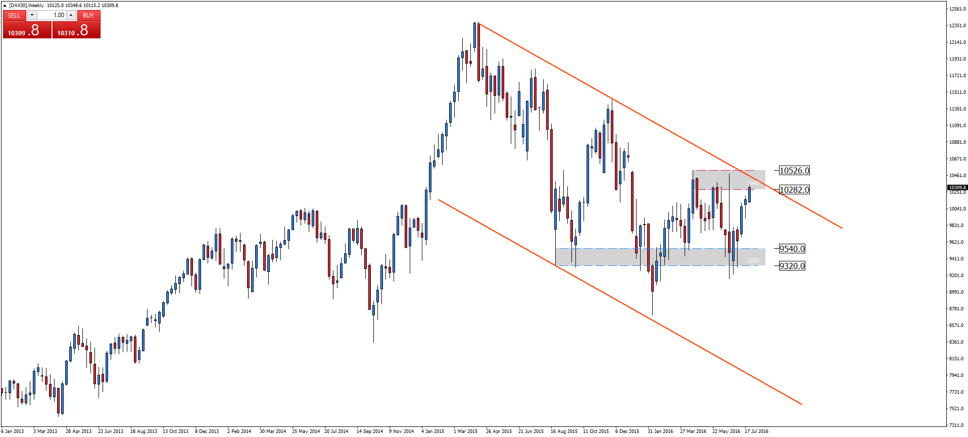 Jeżeli doszłoby do przełamania oporu 10282-10526, to wzrosty powinny być kontynuowane, jednak siła korekt w trendzie wzrostowym będzie o wiele większa, niż zniesienia wzrostów na indeksie S&P 500.