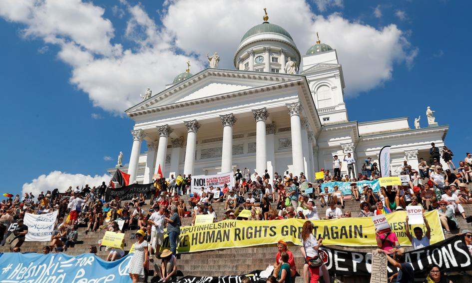 W stolicy Finlandii Helsinkach, gdzie w poniedziałek spotkają się prezydenci USA i Rosji, Donald Trump i Władimir Putin, odbyła się w niedzielę demonstracja, której uczestnicy apelowali o poszanowanie praw człowieka i demokracji oraz o ochronę środowiska.