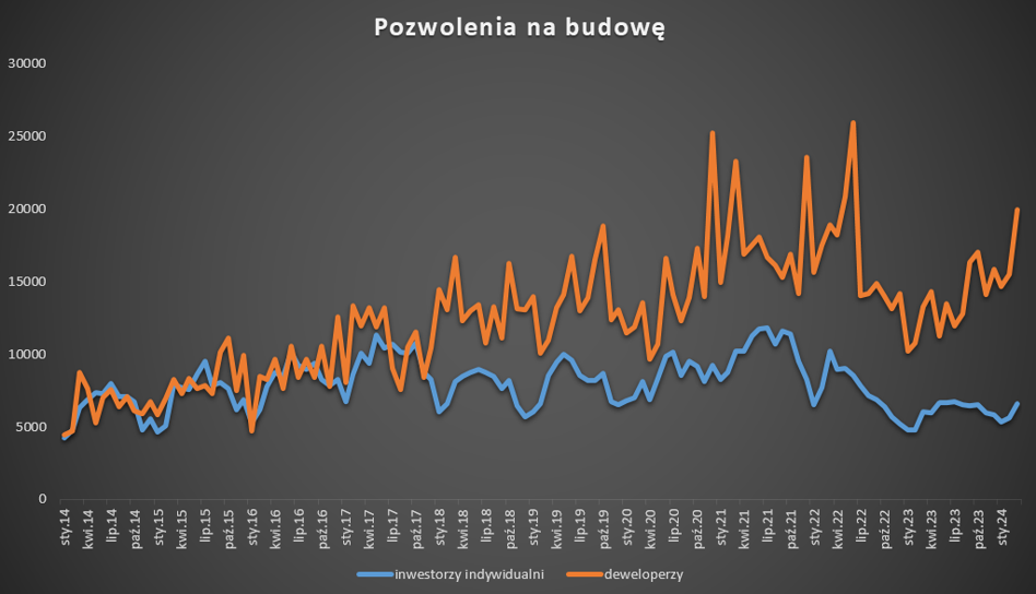 Inwestorzy indywidualni zakończyli kwartał z 17,5 tys. pozwoleń, co także było wyższym wynikiem niż w I kw. 2023 r.