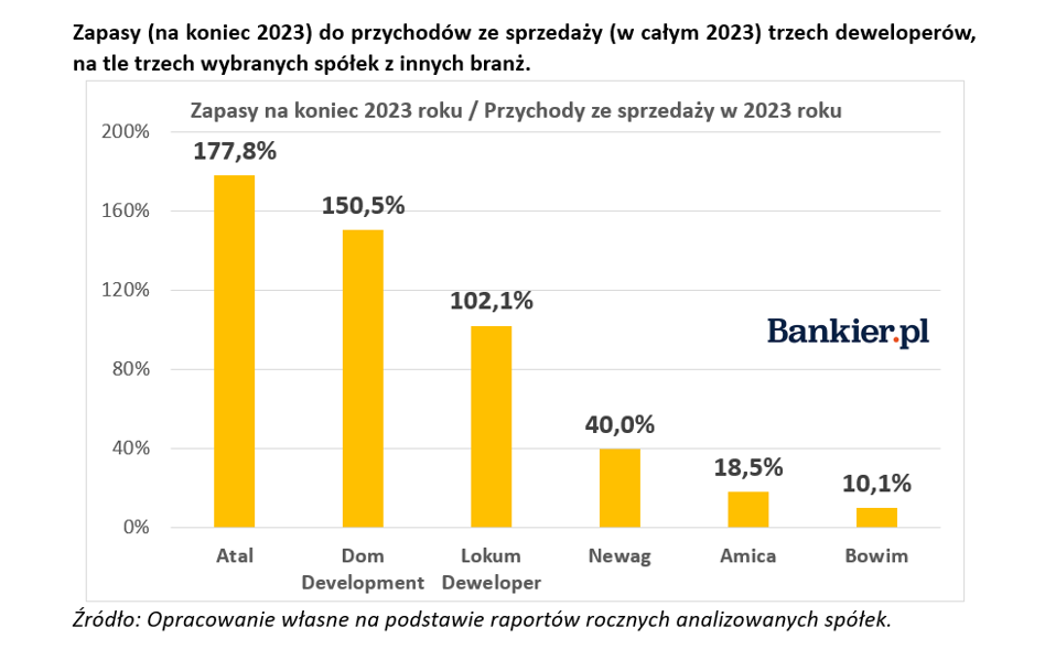 „Deweloperka to działalność gospodarcza charakteryzująca się relatywnie długim tzw. cyklem rotacji zapasów. Innymi słowy okres od podjęcia decyzji o rozpoczęciu projektu deweloperskiego do jego zakończenia w formie upłynnienia gotowych lokali zajmuje do kilku lat. Przejawia się to wysokim przeciętnym poziomem zapasów (gruntów, robót w toku oraz wyrobów gotowych) w stosunku do rocznych przychodów ze sprzedaży” – zauważa ekspert i ilustruje to przykładem.