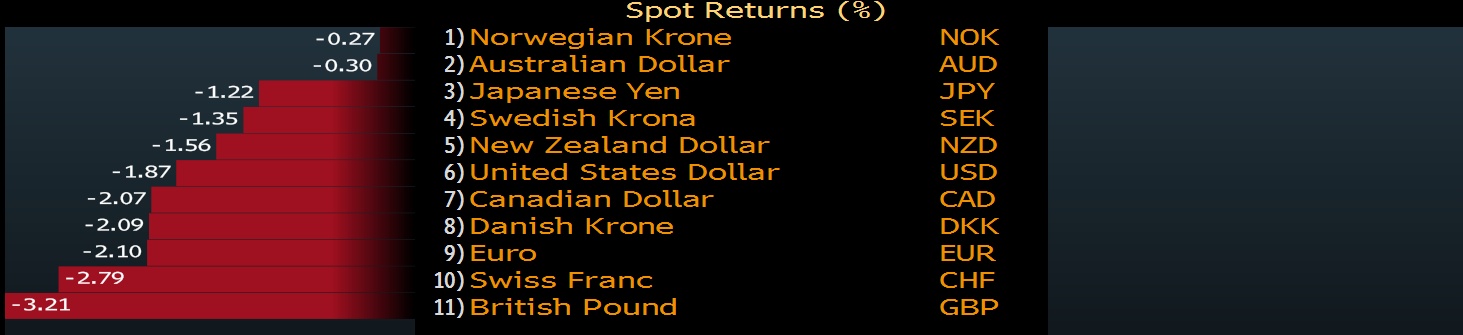 Waluty Państw G10 względem PLN od początku miesiąca