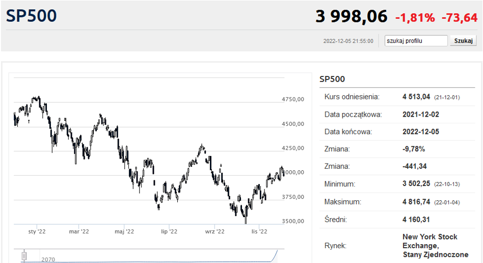 Stąd też taka, a nie inna reakcja rynków finansowych, na których wycena akcji (oraz obligacji) w znacznej mierze zależy od oczekiwanego poziomu stóp procentowych dla dolara. W efekcie S&P500 rozpoczął tydzień od spadku o 1,79%, ponownie schodząc poniżej 4 000 punktów. Nasdaq poszedł w dół o 1,95% i zatrzymał się na poziomie 11 239,94 pkt. Dow Jones oddał 1,40% i znalazł się tuż poniżej 34 000 punktów.