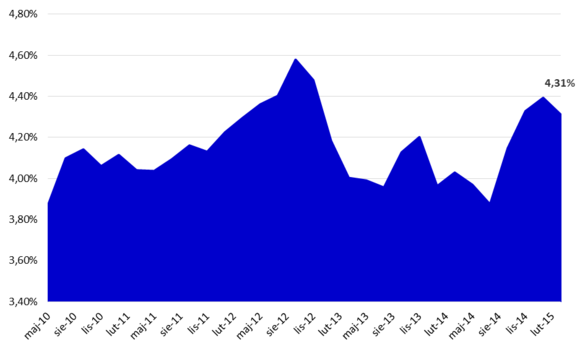Przeciętna rentowność najmu netto w okresie maj 2010 - marzec 2015