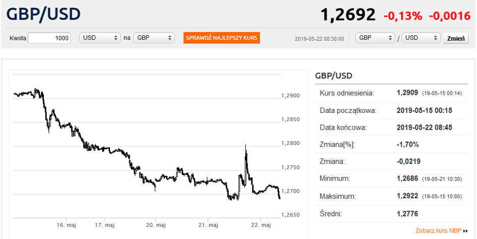 Początkowo funt umocnił się na wiadomość o planach rozpisania drugiego referendum. Kurs GBP/USD ruszył w górę, rosnąc z ok. 1,27 do przeszło 1,28 dolarów za funta. Ale pozytywna reakcja była krótkotrwała i już po kilkunastu minutach brytyjska waluta zaczęła oddawać wzrosty. W środę rano za jednego funta płacono ok. 1,2690 USD. To poziom bliski tegorocznego minimum na "Kablu". Ze względu na słabość złotego względem euro kurs funta utrzymał się jednak na poziomie ok. 4,90 zł.