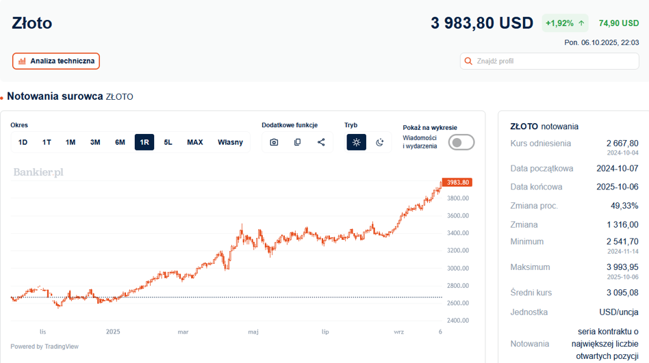 W zasadzie był to dzień jak co dzień. Dolarowe notowania złota zwyżkowały o blisko 2% i znalazły się o włos od poziomu 4 000 USD/oz. Równocześnie nowy rekord wszech czasów ustanowiło „cyfrowe złoto” – czyli bitcoin. A giełda w Tokio poszła w górę o blisko 5%. Wszystko to pokłosie zmian politycznych w Japonii, które wyniosły do władzy zwolenniczkę jeszcze szybszego „drukowania pieniędzy”.