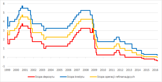Rada Prezesów, organ decydujący o polityce monetarnej EBC, postanowiła pozostawić stopy procentowe na niezmienionym poziomie. Oznacza to, że podstawowa stopa nadal wynosi 0%, stopa kredytu 0,25%, a stopa depozytowa -0,40%. Są to oczywiście najniższe poziomy stóp w historii strefy euro.