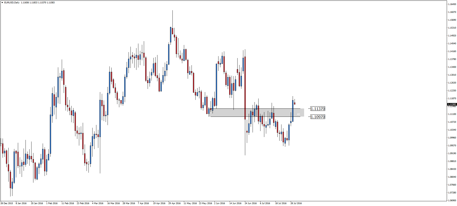 Tak fatalny odczyt PKB był motorem napędowym ostatnich wzrostów na parze walutowej EUR/USD. Kupującym udało się pokonać silne wsparcie 1.109-1.113. Kontynuacja ruchu piątkowego zostanie bazowym scenariuszem, jednak należy mieć na uwadze przyszłe wypowiedzi Prezesa Europejskiego Banku Centralnego, który może dokonać zmian w obecnym programie „luzowania ilościowego".