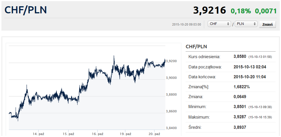 Szwajcarska waluta zyskiwała ostatnio wobec euro m.in. ze względu na rosnące prawdopodobieństwo uruchomienia przez Europejski Bank Centralny dodatkowego programu luzowania ilościowego (QE). Wcześniej, w drugiej połowie sierpnia, będący tradycyjną "bezpieczną przystanią" dla inwestorów frank umacniał się na skutek zawirowań na globalnych rynkach finansowych zainaugurowanych przez krach w Chinach.