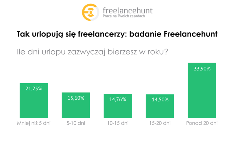 Nie wszyscy freelancerzy jednak są tak zrelaksowani. Aż 21,25 proc. spośród 1229 osób biorących udział w badaniu Freelancehunt nie wybrało do tej pory nawet 5 dni urlopu.