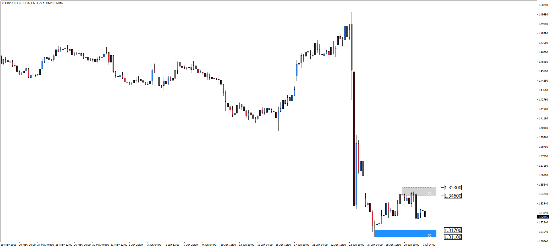 Na konferencji szef BoE wspomniał również, że niskie stopy procentowe mogą zaszkodzić bankom i ich wynikom finansowym, zatem możemy spodziewać się dodatkowego QE ze strony Banku Anglii. Para walutowa GBP/USD podczas konferencji spadła o ponad 200 pipsów. Na wykresie czterogodzinnym notowania waluty w dalszym ciągu pozostały pomiędzy strefą popytu 1.311-1.317, a strefą podaży 1.346-1.353.