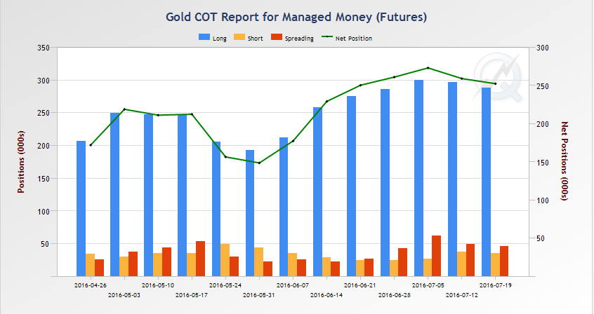 Argumenty przymawiające z spadkiem notowań złota przedstawiliśmy w ostatnim artykule. Natomiast ostatnie, piątkowe dane commitment of traders potwierdzają korektę. Zarządzający na kontraktach terminowych pomniejszyli swoje zaangażowanie na rynku złota po długiej stronie rynku równocześnie zamykając wcześniejsze pozycje krótkie.