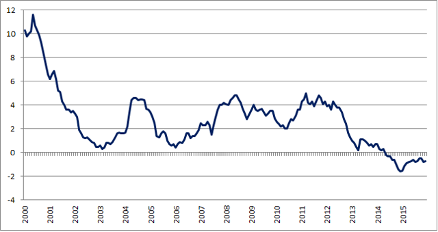 Deflacja w ujęciu rocznym nad Wisłą utrzymuje się już od lipca 2014. Największy do tej pory spadek cen (-1,6 proc.) odnotowano w lutym 2015 r.