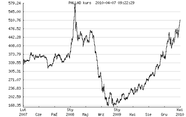 W marcu pallad podrożał o 11% a w pierwszych dniach kwietnia dołożył to tego rezultatu niemal 7%, osiągając cenę 510$ za uncję. Oznacza to, że od dna z listopada 2008 roku notowania tego metalu wzrosły 3,2-krotnie, z nawiązką odrabiając straty poniesione od czasu bankructwa banku Lehman Brothers. Uncja złota, która pod koniec 2008 roku była warta 4,68 uncji palladu, dziś kupuje o połowę mniej tego metalu.