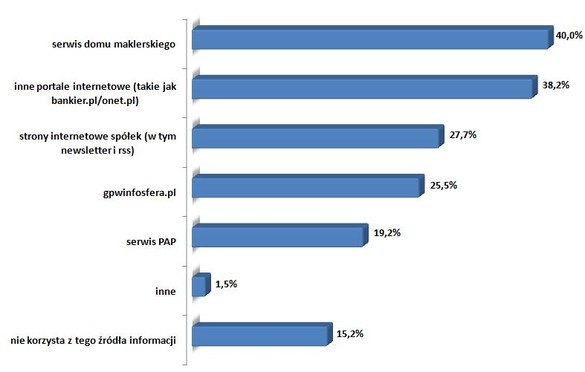 W procesie komunikacji spółek z inwestorami, oprócz serwisów internetowych, bardzo dużą rolę odgrywają także domy maklerskie. Przygotowywane przez nie serwisy, dedykowane wyłącznie klientom danego domu, są najczęściej wykorzystywanym przez inwestorów źródłem informacji (40 proc.) jeśli chodzi o raporty bieżące i okresowe spółek. Na kolejnym miejscu znalazły się serwisy internetowe - aczkolwiek różnica ta jest minimalna (38 proc.). Pokazuje to, że w procesie walki o użytkownika giełdowe portale internetowe starają się ten obszar rozwijać i udoskonalać. Jednak z drugiej strony rzadko mamy do czynienia z sytuacją, w której inwestorzy korzystają wyłącznie z jednego źródła informacji.