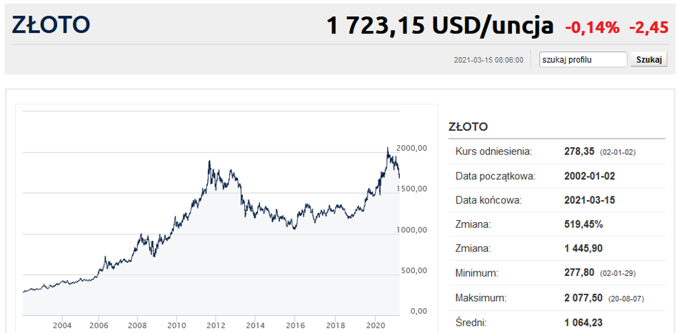 Dziś złoto wyceniane jest na 1722 dolary za uncję trojańską (czyli 31,1034768 g). Jak łatwo policzyć, jedna tona zawiera więc 32 150,75 uncji trojańskich, a 100 ton to już ponad trzy miliony uncji. Przy obecnych cenach wartość 100 ton złota, o których mówi prezes Glapińskim, to ponad 5,5 mld dolarów, czyli 21,25 mld złotych.