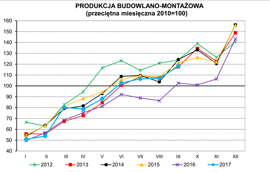W dalszym ciągu trwa dynamiczne ożywienie w budownictwie, które jednak w znacznej mierze zawdzięczamy katastrofalnie niskiej bazie sprzed roku – w sierpniu ’16 obroty w branży budowlanej zmalały aż o 15,3% rdr. We wrześniu wartość produkcji budowlano-montażowej zwiększyła się o 15,5% rdr. To także pewne rozczarowanie, ponieważ rynkowy konsensus zakładał wzrost o 18,1%. Miesiąc wcześniej wzrost wyniósł 23,5% rdr.