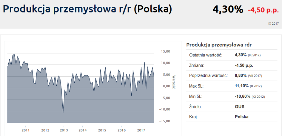 Dane można uznać za rozczarowujące. Ekonomiści spodziewali się dynamiki produkcji na poziomie 6,7% mdm i 5,2% rdr. W sierpniu polska produkcja przemysłowa zwiększyła się o 5,9% mdm i 8,8% rdr.