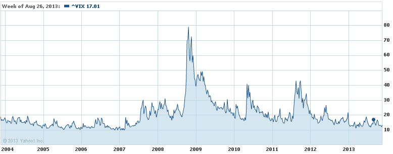 Od początku roku VIX utrzymuje się na historycznie niskich poziomach, oscylując pomiędzy 11 a 20 pkt. 15 marca indeks ten znalazł się na najniższym poziomie (11,3 pkt.) od lutego 2007 roku, czyli od początku kryzysu finansowego. Na zamknięciu wtorkowych notowań VIX wzrósł o 2,3%, osiągając wartość 13,39 pkt.