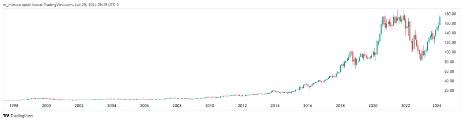 Notowania Amazona zbliżają się do rekordowych poziomów. Akcje spółki osiągnęły podczas wczorajszej sesji poziom 173 USD, zyskując od początku roku ponad 15%.