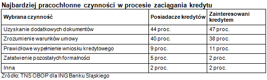 W świadomości klienta kredyt hipoteczny to zdecydowanie jeden z najbardziej skomplikowanych produktów dostępnych w ofercie banków. Nie chodzi tylko o dużą kwotę i wieloletni okres spłaty, ale również szereg formalności związanych z samą procedurą ubiegania się o kredytowanie nieruchomości. Dla konsumentów zainteresowanych kupnem pierwszego mieszkania wypełnienie wniosku o kredyt czy też formularza PCC-3, w sprawie podatku do czynności cywilno-prawnych sprawia olbrzymie trudności. Potwierdzają to ostatnie badania TNS OBOP na zlecenie ING Banku Śląskiego.
