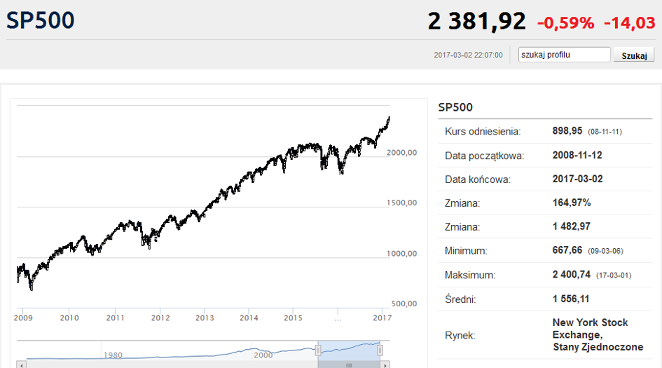 Co w takim razie oznacza obecna zbieżność minimum w statystyce bezrobocia i maksimum S&P 500? Na razie jest za wcześnie, aby uznać to za jednoznaczny sygnał sprzedaży akcji. Póki co to jedno z ostrzeżeń, które należy obserwować i reagować w razie wyraźnego wzrostu napływu bezrobotnych. Po drugie to sygnał potwierdzający, że trwająca od blisko ośmiu lat hossa na Wall Street jest już w stadium bardzo zaawansowanym i w związku z tym coraz niebezpieczniejszym dla jej uczestników.