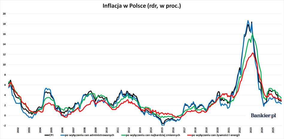 W październiku 2025 roku inflacja bazowa znalazła się najniżej od 6 lat, ale i tak przekroczyła oczekiwania większości analityków. Nadal też nie znalazła się w ramach 2,5-procentowego celu NBP.