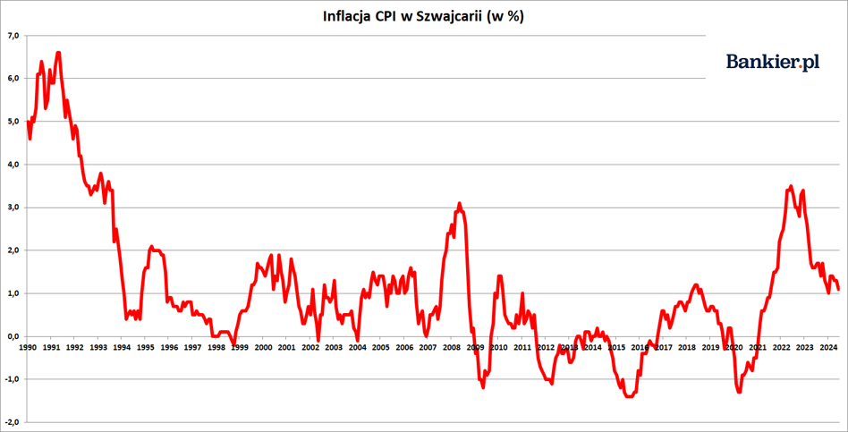 Wcześniej przez 16 miesięcy szwajcarska inflacja przekraczała 2%, w porywach sięgając 3,5% w sierpniu 2022 roku. Był to wtedy najwyższy odczyt od blisko 30 lat. Niemniej jednak Szwajcaria okazała się jedynym krajem w Europie, któremu w latach 2020-23 udało się uniknąć galopującej inflacji, jaka dotknęła prawie wszystkie kraje Zachodu, prowadząc do realnego zubożenia ludności i spadku dochodów rozporządzalnych.