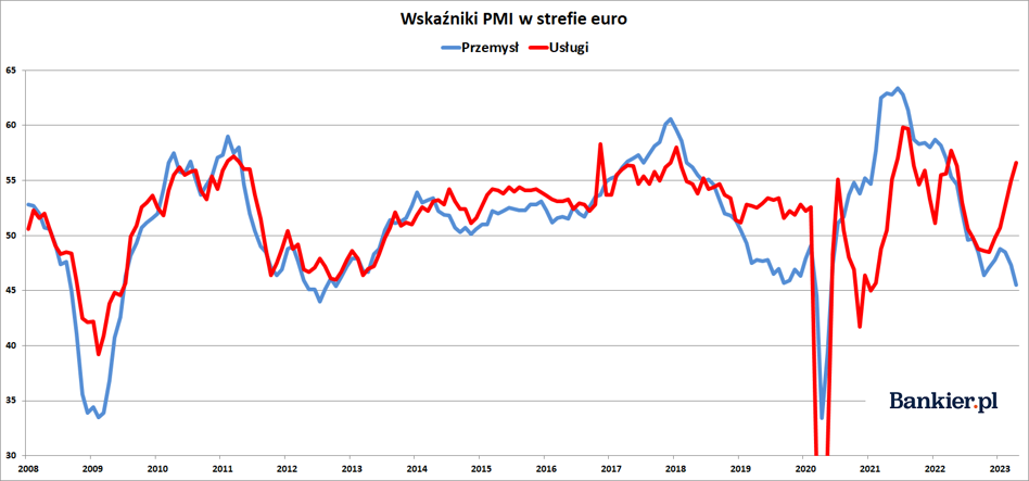 9. EuroPMI: przemysł w coraz głębszej recesji, a usługi kwitną