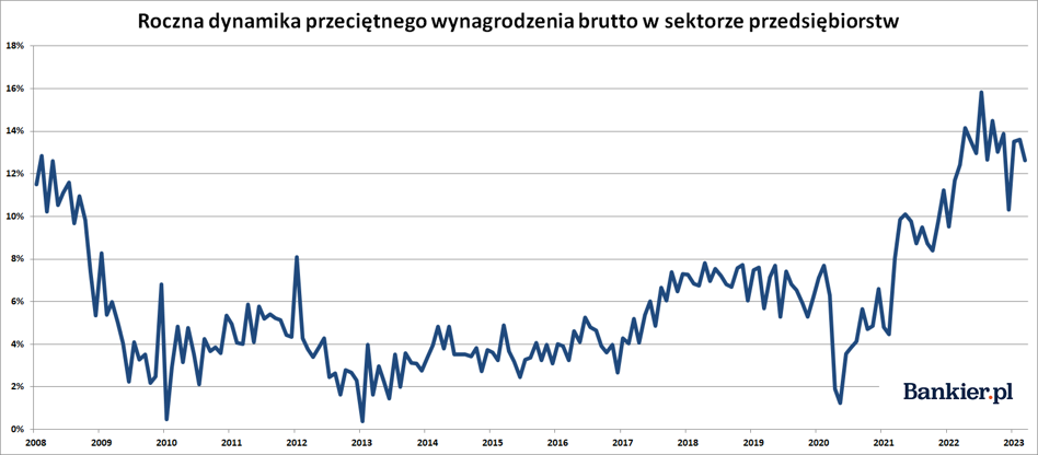 Marzec przyniósł utrzymanie wysokiej nominalnej dynamiki płac w sektorze przedsiębiorstw. Aczkolwiek po uwzględnieniu inflacji pensje realnie spadły. Nieoczekiwanie obniżyło się także zatrudnienie.