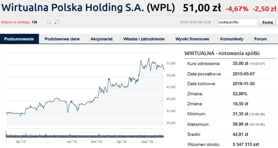 Spółka przeszła proces intensywnej integracji, zmiany strategii oraz rebrandingu. Te działania doprowadziły do poprawy wyników finansowych: 2,5x wzrostu zysku EBITDA i czterokrotnego wzrostu wartości rynkowej. 15 miesięcy po inwestycji Innova, Wirtualna Polska Holding zadebiutowała na warszawskiej Giełdzie Papierów Wartościowych, a obecnie kapitalizacja spółki przekracza 1,5 mld zł, przy wzroście kursu akcji od IPO o blisko 70%. Dzięki zrealizowanemu właśnie wyjściu z inwestycji Innova zrealizowała średnioroczną stopę zwrotu (IRR) na poziomie przekraczającym 60%, podkreślono także w komunikacie.