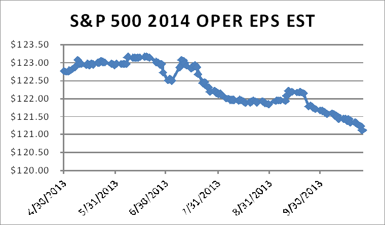 Efekt jest taki, że prognozowany dwa lata temu tegoroczny EPS indeks S&P500 osiągnie najwcześniej w roku... 2015. Podobny manewr rynkowi eksperci zastosowali wobec prognoz na rok 2014: jeszcze w czerwcu obiecywali EPS na wynikach operacyjnych rzędu 132 USD, a w październiku już o dwa dolary mniej. W rezultacie przez cztery miesiące wycena amerykańskich akcji podskoczyła z 12,9 do 14,6-krotności oczekiwanych przyszłorocznych zysków operacyjnych.