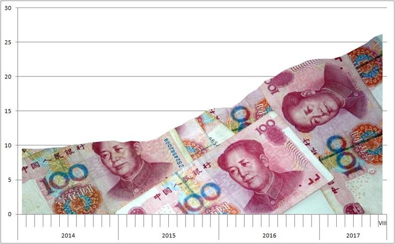 Ostatnio prezes Ludowego Banku Chin Zhou Xiaochuan ostrzegał przed Momentem Minsky'ego - załamaniem po okresie dynamicznego wzrostu zadłużenia gospodarki. W pewnym momencie lewar banków jest zbyt wysoki, a zadłużone podmioty nie są w stanie regulować zobowiązań i dochodzi do kryzysu. Już teraz wiele chińskich firm wykorzystuje nowo zaciągane kredyty do spłaty wcześniejszego zadłużenia, a nie rozwoju biznesu.