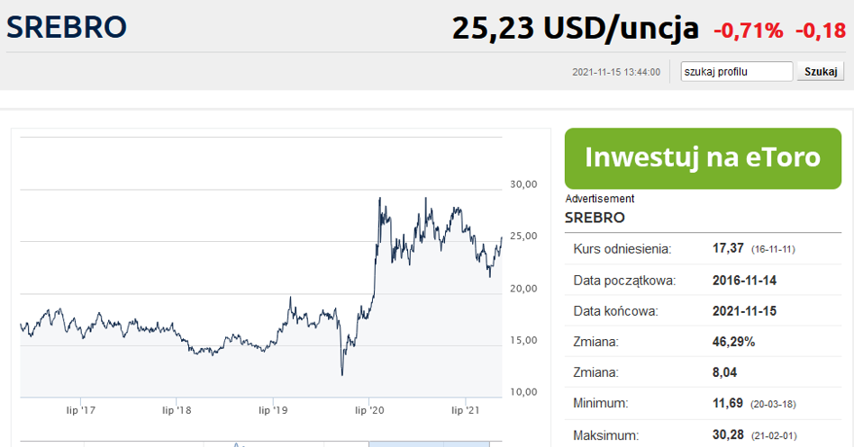 Jednakże również „biedny kuzyn złota” ostatnio zachowuje się nieco lepiej. Od dołka z końcówki września ceny srebra wyrażone w USD poszły w górę o przeszło 17% i zdają się mieć apetyt na powrót w rejon 30 USD za uncję.