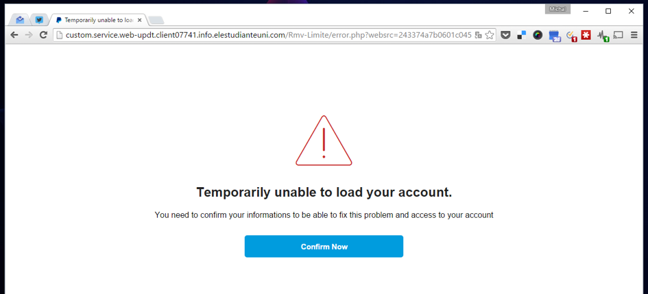 Po „zalogowaniu” do fałszywej strony pojawił się groźnie brzmiący komunikat. „Twojego konta nie udało się załadować. Musisz potwierdzić swoje dane, aby naprawić ten problem”. Kliknąłem zatem odpowiedni przycisk, spodziewając się, że poza loginem i hasłem oszuści chcą zapewne uzyskać jeszcze dane karty płatniczej.