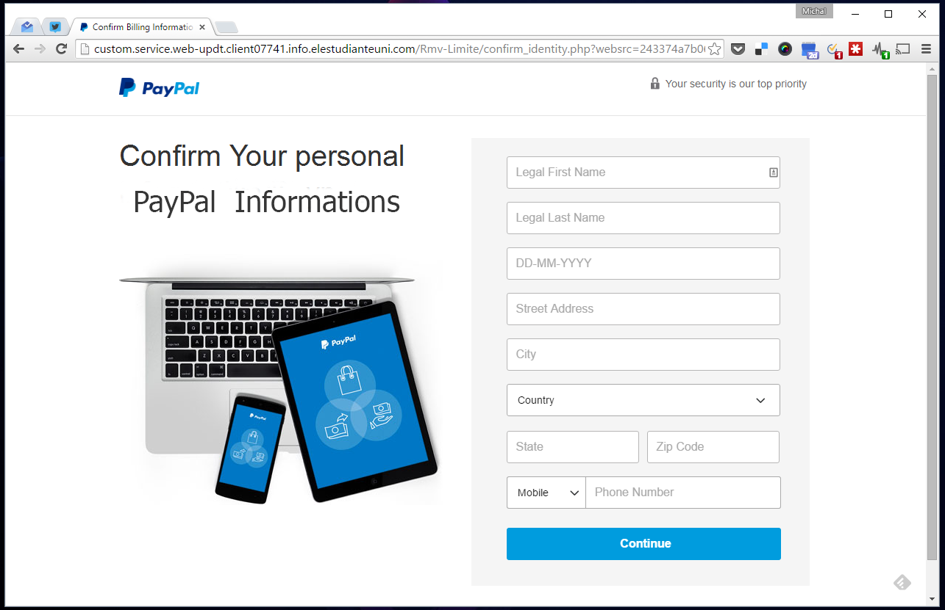 Jak często bywa w przypadku wysyłanego na ślepo spamu, wiadomość trafiła na konto, które nie było połączone z moim rachunkiem PayPal. Postanowiłem jednak sprawdzić, jakie dane próbują wyłudzić przestępcy. Z każdym kolejnym krokiem moje zdziwienie rosło.