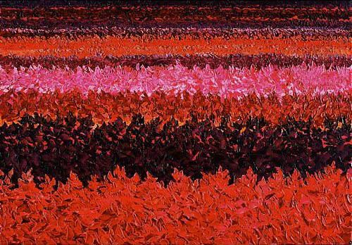 Nie można oderwać wzroku od obrazów przedstawiających róże. Obrazy nasycone są tętniącymi barwami od głębokiego burgundu do soczystych oranży. Mocno, grubo położona farba, nadaje złudzenie trójwymiarowości. Z jednej strony są to obrazy ciężkie, abstrakcyjne, z drugiej strony rytm zaznaczony jest poprzez pasma kolorystyczne, które nadają lekkość mimo zastosowanej techniki.
