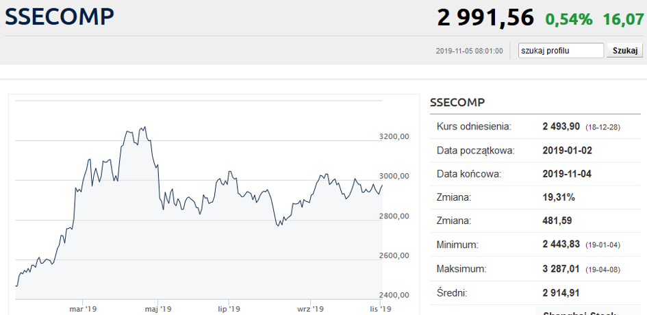 Po fatalnym ubiegłym roku, gdy Shanghai Composite był najsłabszym z głównych giełdowych indeksów świata, rok bieżący jest już dla parkietów w Państwie Środka dużo łaskawszy. SHCOMP jest już o 20 proc. wyżej niż na zakończenie 2018 r. i, dla odmiany, znajduje się w globalnej czołówce - wyprzedza go wyłącznie nowozelandzki NZX 50 (+23,5 proc. od początku roku).