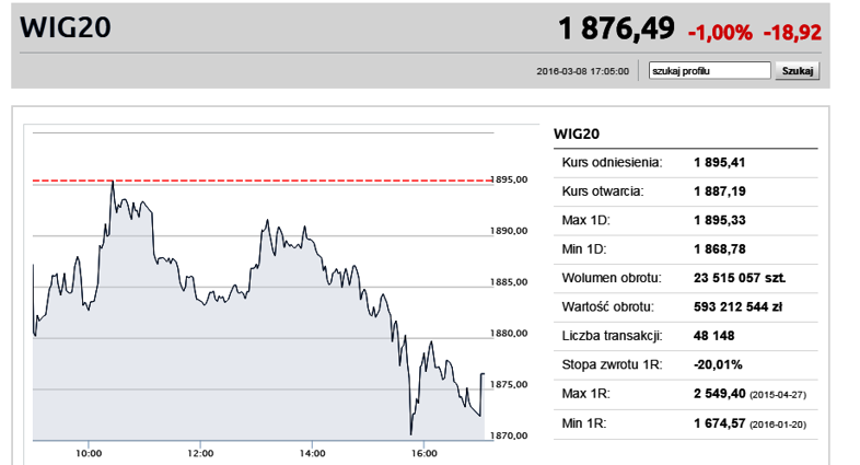 Na szerokim rynku trwała wyprzedaż walorów Action (-4,6%). Spółka odwołała wczoraj prognozy dotyczące zysków za 2015 rok. Potaniał także Impel (-6,3%), którego zarząd zarekomendował brak dywidendy za 2015 rok.