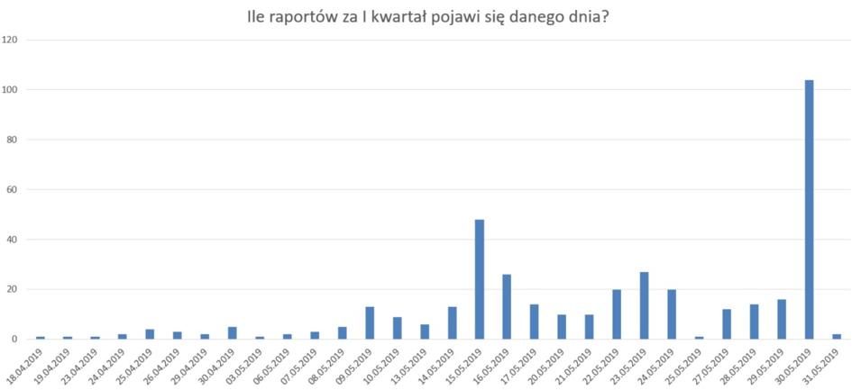 Pierwszy kwartał 2019 roku zakończył się w marcu. Dla notowanych na głównym rynku GPW spółek, których rok obrotowy pokrywa się z rokiem kalendarzowym (a takich jest zdecydowana większość), oznacza to konieczność publikacji raportu kwartalnego z wynikami za okres styczeń-marzec. Zgodnie z przepisami taka publikacja może nastąpić w dniu wybranym przez spółkę, jednak nie później niż 60 dni po zakończeniu kwartału. Łatwo więc policzyć, że podobnie jak rok temu, termin ten upływa wraz z końcem maja.