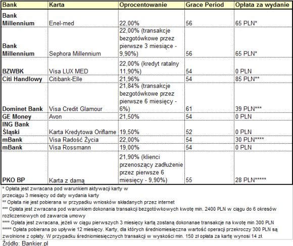 Banki oferują bardzo szeroki wachlarz kart kredytowych. Mają między innymi karty dedykowane specjalnie płci pięknej. Są to zarówno karty kredytowe z programem rabatowym, jak również karty partnerskie przygotowane z zewnętrzną firmą, np. siecią handlową. Dzięki nim klientki mogą otrzymywać zniżki w określonych sklepach, zbierać punkty w programach lojalnościowych i korzystać z dodatkowych profitów.