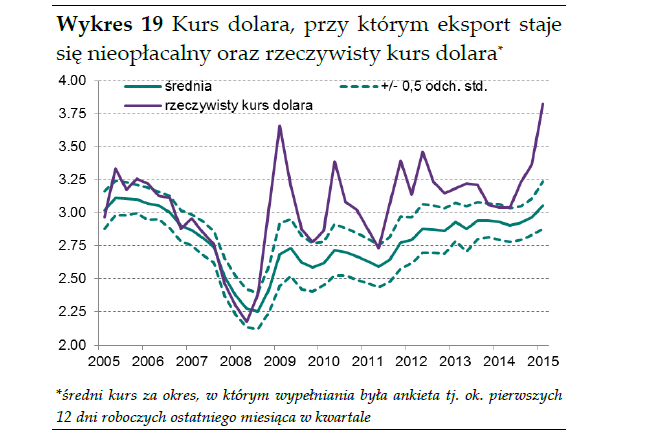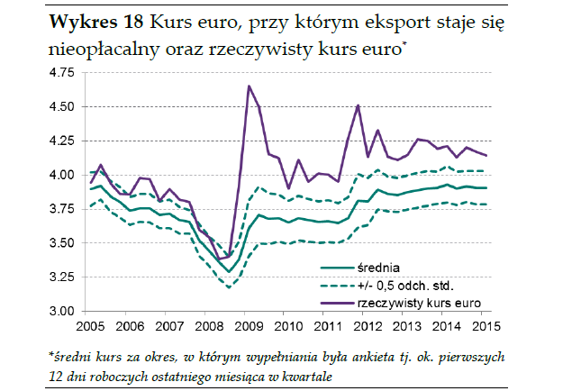 Narodowy Bank Polski w raporcie o nieco przydługim tytule ("Szybki Monitoring NBP Informacja o kondycji sektora przedsiębiorstw ze szczególnym uwzględnieniem stanu koniunktury w I kw. 2015 r. oraz prognoz na II kw. 2015 r.") prezentuje dziś dane o opłacalności eksportu.
