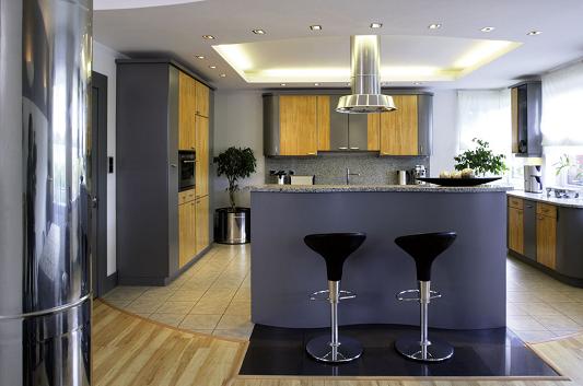 W stalowoszarą kolorystykę wpisuje się zaprojektowany przez Piotra Wełniaka kominek. To niecodzienne rozwiązanie architektoniczne, polegające na wbudowaniu bryły kominka w wygiętą na kształt fali gipsową ściankę, współtworzy we wnętrzu atmosferę harmonii i porządku. Kominkowa ściana została urozmaicona podstawą z szarego granitu, podświetloną od spodu liniowymi źródłami światła. Przyjemny efekt podświetlonej podłogi gospodarze wykorzystują późnym wieczorem, gdy nie mają już czasu, aby rozpalić ogień. Projektant wnętrza skupił się na stylistycznym zespoleniu poszczególnych stref mieszkania. Kolorystyka szarości i zastosowane w salonie materiały zawitały też do kuchni i jadalni. Granitowe blaty nawiązują do podstawy kominka, natomiast na ścianie, w strefie jadalnianej, powtarza się pas tapety z salonu. Podłużne pasmo oświetlają dwa gipsowe kinkiety, dodając swoje „trzy grosze” do świetlnych aranżacji.