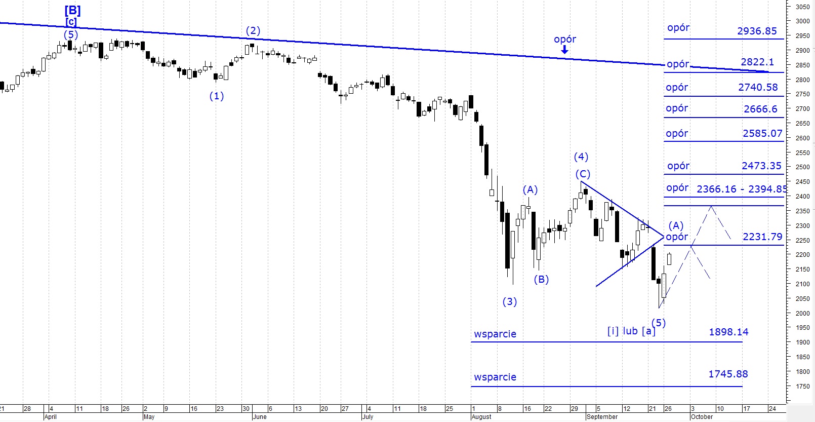 Poziomy oporu: 2231.79, 2366.16 - 2394.85, 2473.35, 2585.07, 2666.6, 2740.58, 2822.1, 2936.85