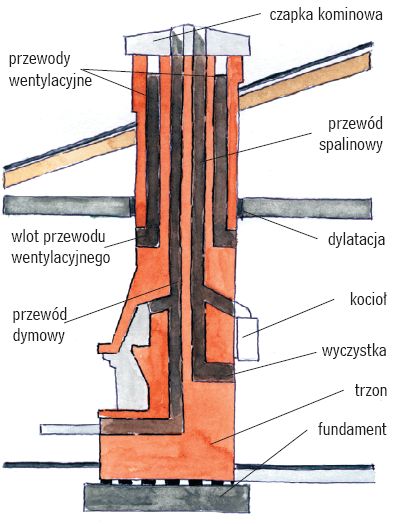 Komin to nie tylko wystający ponad dach element domu, którym odprowadzane są do atmosfery spaliny z urządzeń grzewczych. Ten fragment to jedynie zakończenie komina, w którym znajdują się kanały dymowe, spalinowe i wentylacyjne. W domach jednorodzinnych kominy budowane są bowiem najczęściej jako wielokanałowe, grupujące przewody o różnym przeznaczeniu.Ich przebieg, przekrój oraz sposób wykonania określone są w projekcie budowlanym, ale czasem konieczna jest modyfikacja tych rozwiązań, chociażby ze względu na zmianę systemu ogrzewania. Jeśli to nastąpi, należy pamiętać, że komin musi znaleźć się w takim miejscu, aby było możliwe podłączenie możliwie krótkimi odcinkami poziomymi urządzeń grzewczych i wentylacji. Taki ich przebieg oraz wewnętrzne nierówności przewodów sprzyjają osadzaniu się zanieczyszczeń, co zakłóca ciąg kominowy (i utrudnia ich czyszczenie). Może się więc okazać, że - z różnych przyczyn - trzeba postawić dwa, a nawet trzy oddzielne kominy.