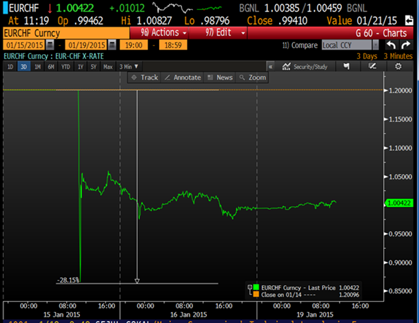 Zniesienie sztywnego kursu franka względem euro przez szwajcarski bank centralny w ubiegłym tygodniu miało szeroko zakrojone konsekwencje ze względu na element zaskoczenia. Rynek nie zignorował faktu, że to wreszcie nastąpiło (i powinno było nastąpić), jednak jeszcze pod koniec poprzedniego tygodnia SNB zdecydowanie twierdził, że dolna granica kursu stanowiła integralną część szwajcarskiej polityki pieniężnej – po czym znienacka przestało tak być.
