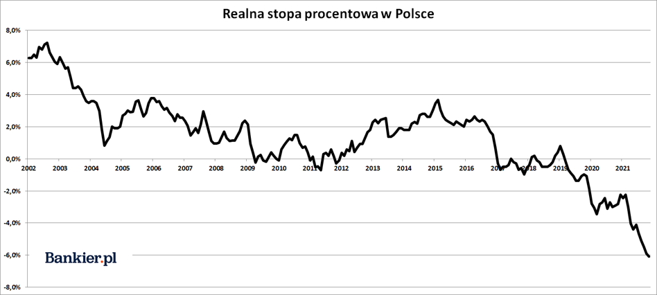 Jesienią 2021 roku Rada Polityki Pieniężnej zakończyła nieudany eksperyment polityki zerowych stóp procentowych. Lecz szybciej od stóp rosła inflacja, co skutkowało jeszcze głębszym spadkiem realnych stóp procentowych i pogłębieniem finansowej represji.