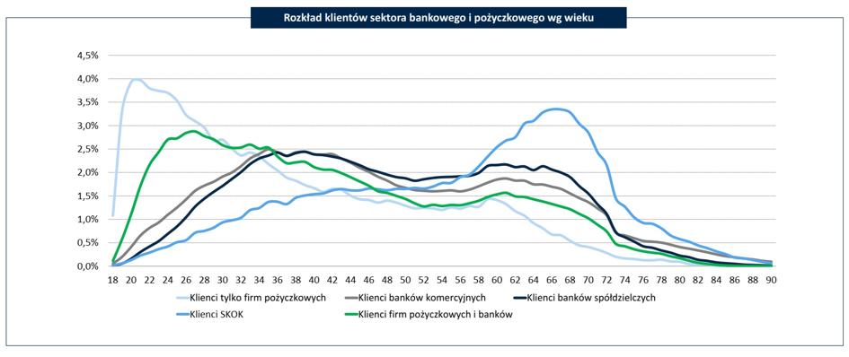 Informacje gromadzone przez Biuro Informacji Kredytowej potwierdzają także popularny stereotyp – firmy pożyczkowe mają najmłodszych klientów, a SKOK-i – najstarszych. 20-latkowie stanowią 4 proc. nieubankowionej klienteli instytucji udzielających pożyczek. Z kolei w spółdzielczych kasach oszczędnościowo-kredytowych najliczniejszą grupę stanowią osoby w wieku od 66 do 70 lat.