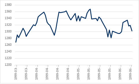 24 marca 1999 r. NATO rozpoczęło naloty na Jugosławię. W trakcie trwającej 78 dni operacji na amerykańskim rynku akcji było bardzo burzliwie. W efekcie S&P 500 wzrósł jedynie o 2,6%, choć krótkoterminowym inwestorom nie brakowało okazji by zarobić znacznie więcej.