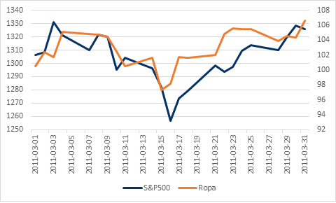 Ostatnia interwencja amerykańskich wojsk – interwencja w Libii – przypadła niemal w środku marcowego dołka na Wall Street. Operacja powietrzna przeciw siłom Muammara Kadafiego rozpoczęła się 19 marca i trwała 12 dni. W tym czasie S&P 500 dał zarobić blisko 4%, podczas gdy ropa podrożała o 4,9%.