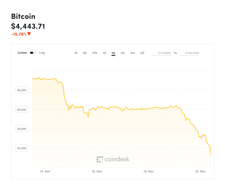 Pierwsze gwałtowne spadki, które nastąpiły w połowie listopada na rynku kryptowalut, były tłumaczone podziałem kryptowaluty bitcoin cash i zachowaniem dużych kopalni, przesuwających swoją moc obliczeniową pomiędzy poszczególnymi systemami. W sieci pojawiły się także informacje na temat raportu firmy konsultingowej KPMG, która prognozuje, że minie wiele czasu, zanim jakakolwiek kryptowaluta zyska status pełnoprawnego środka przechowywania wartości.